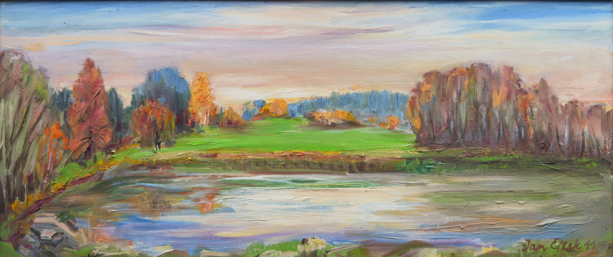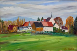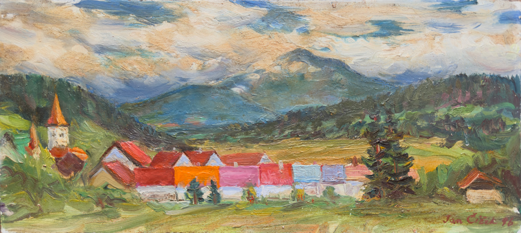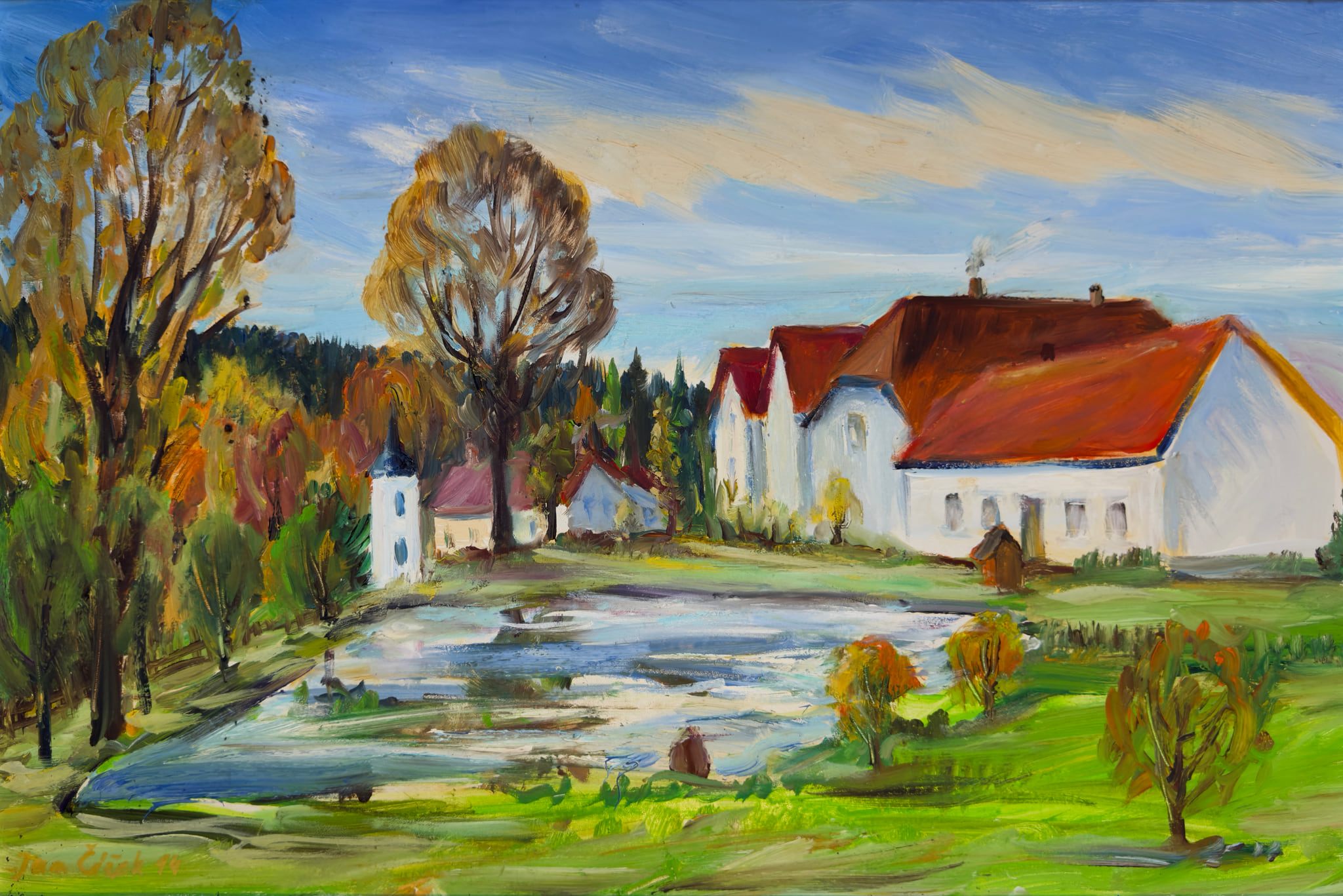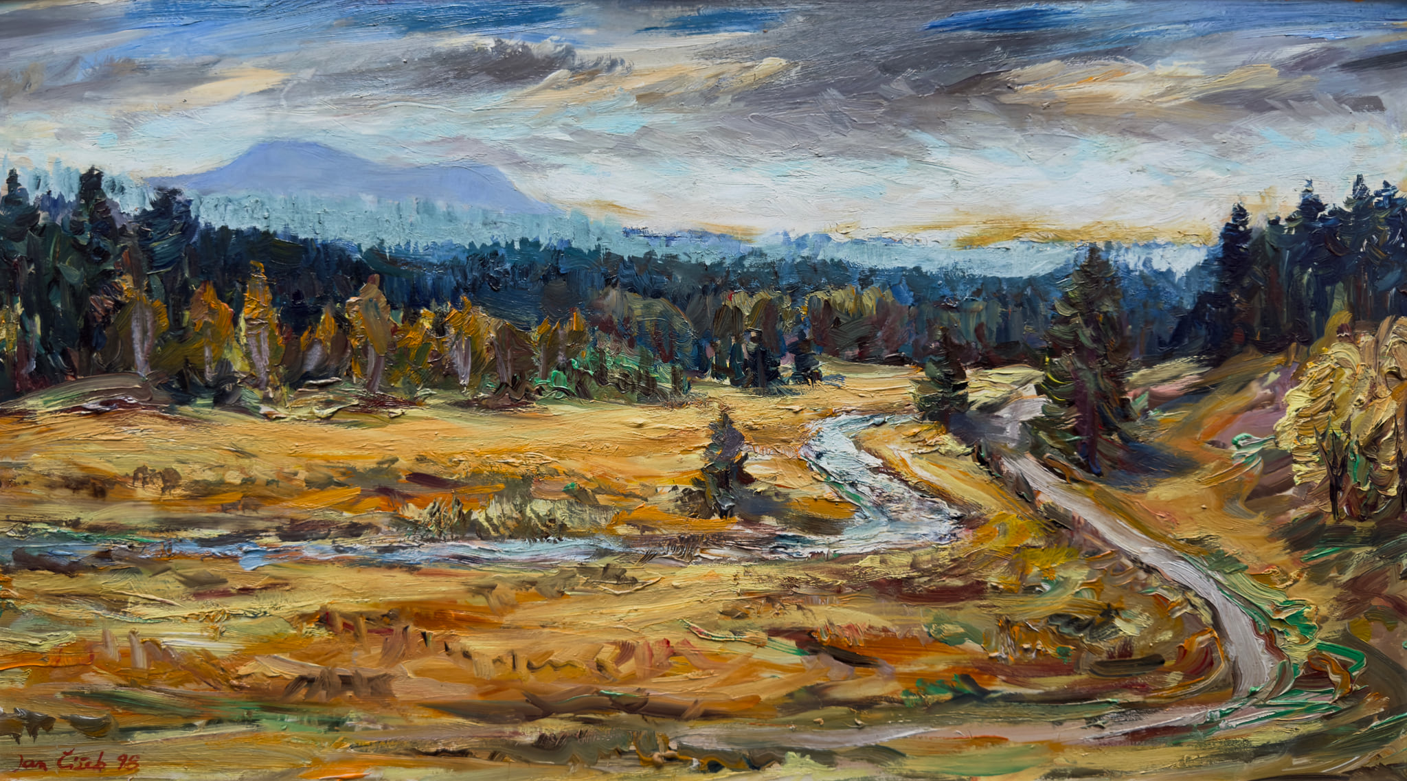 údolí řeky Otavy, šumavské slatě, romantické rybníky i jihočeské vesničky. Tvořil převážně olejomalby
