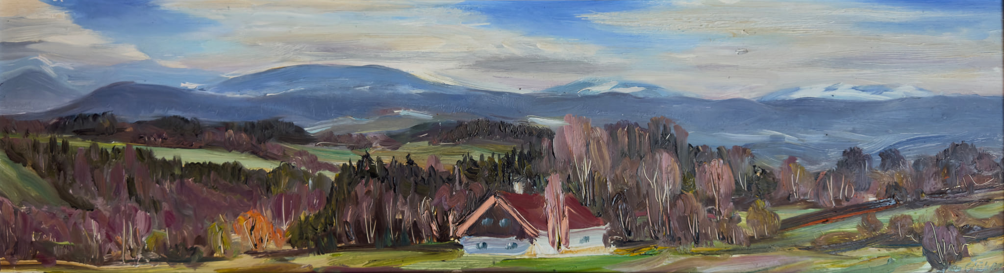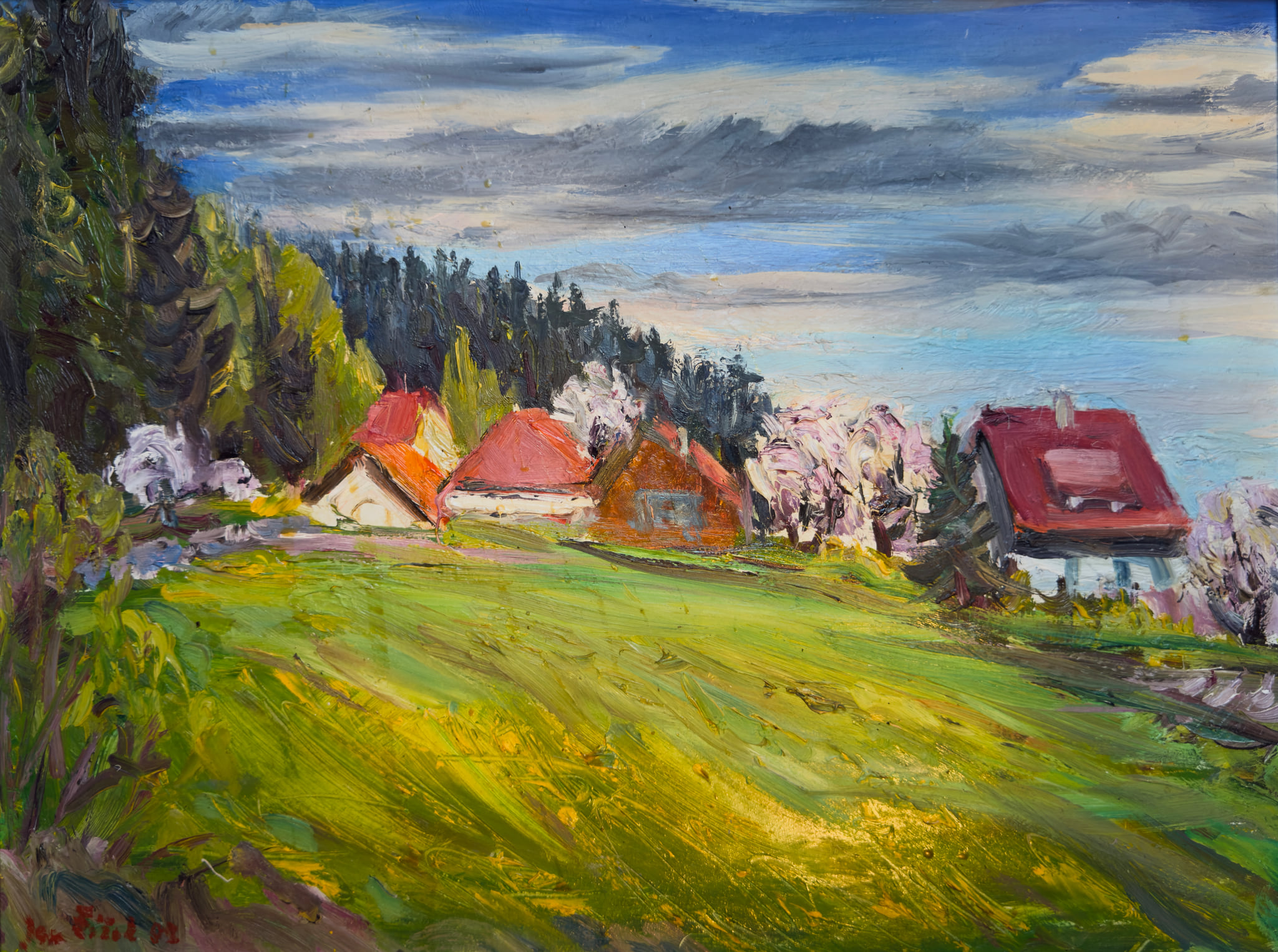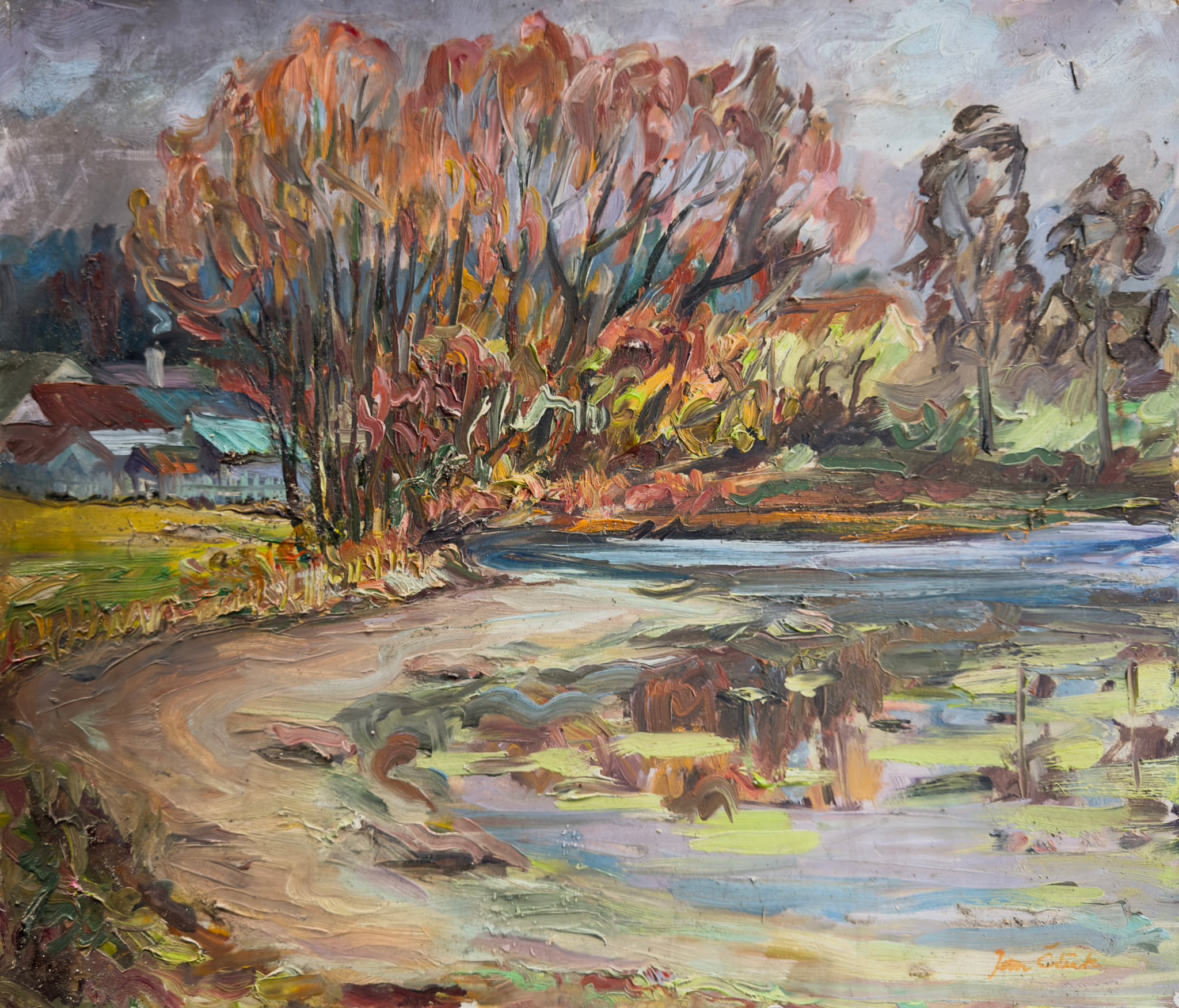 údolí řeky Otavy, šumavské slatě, romantické rybníky i jihočeské vesničky. Tvořil převážně olejomalby