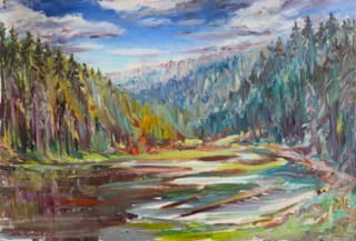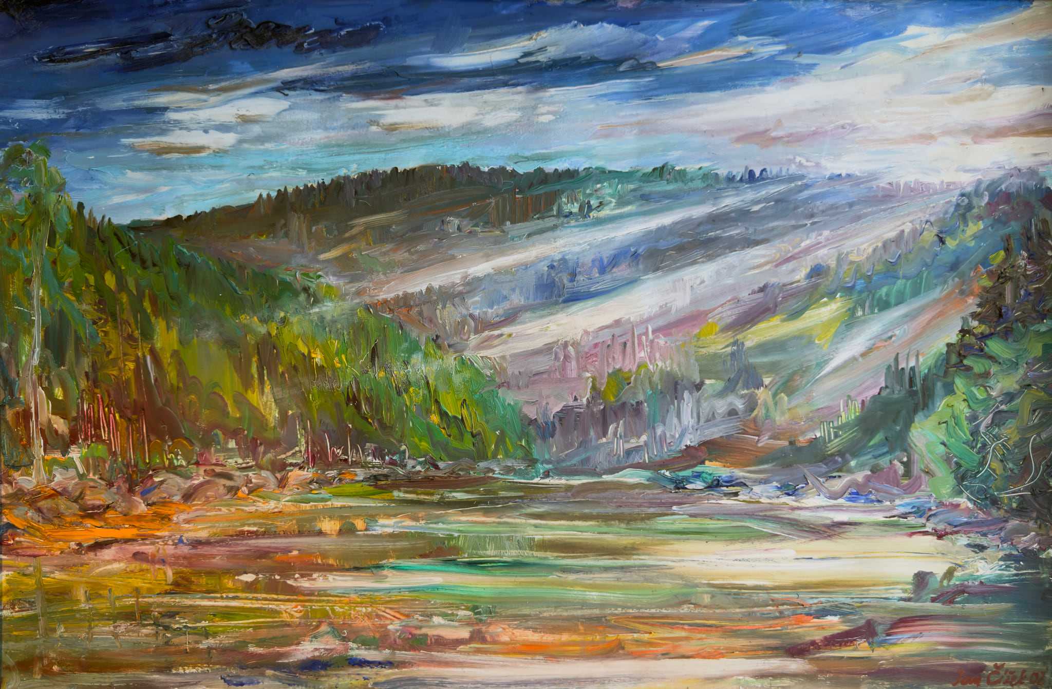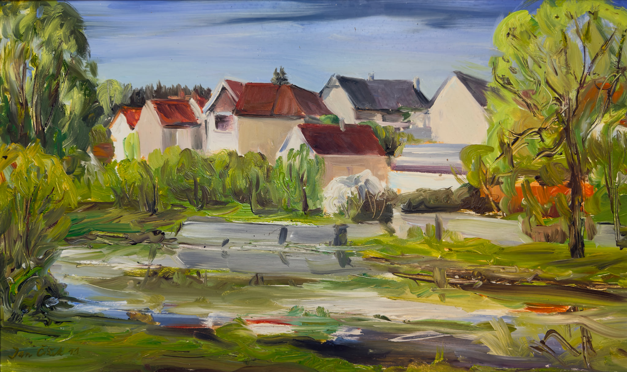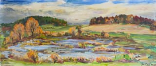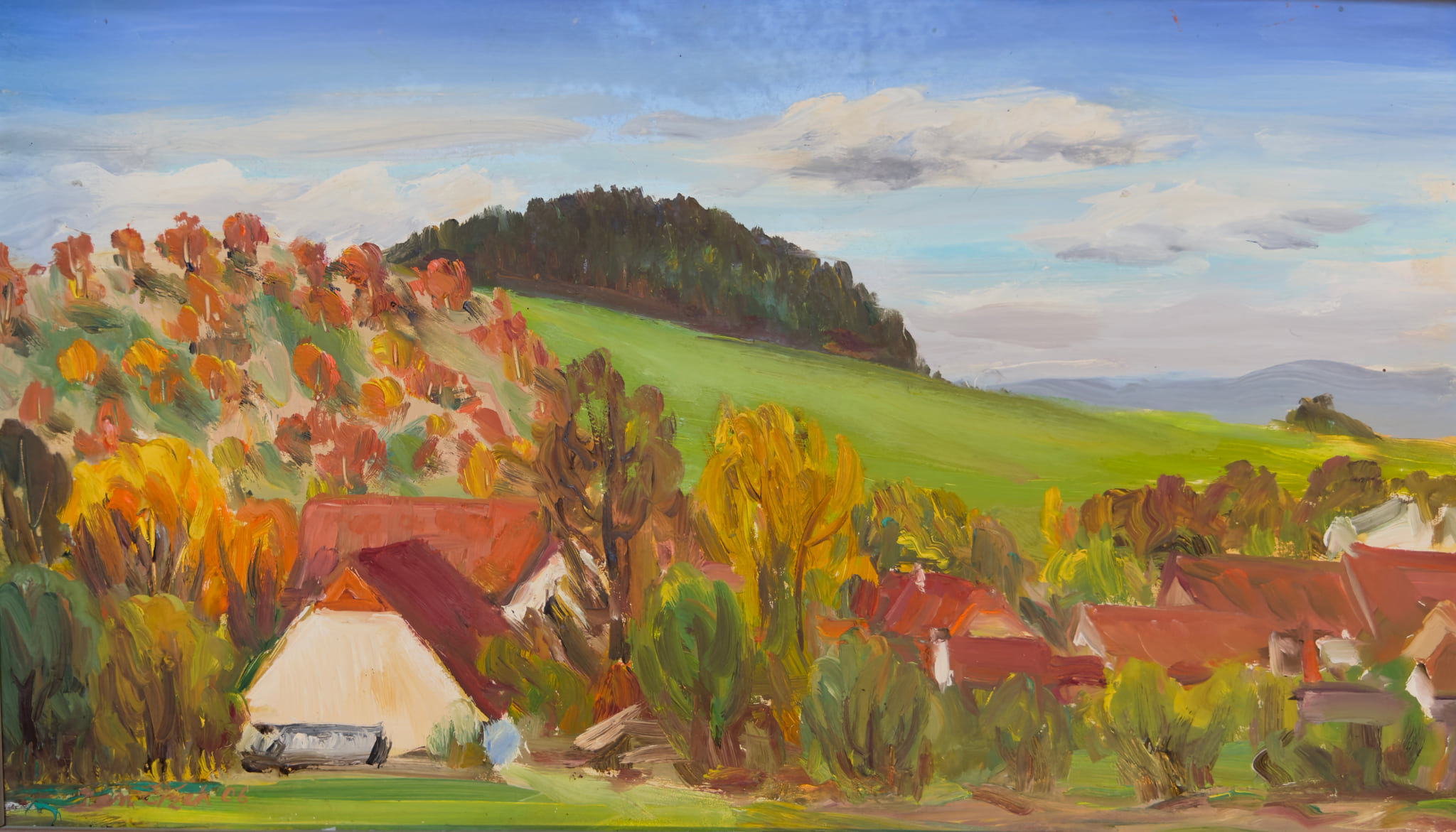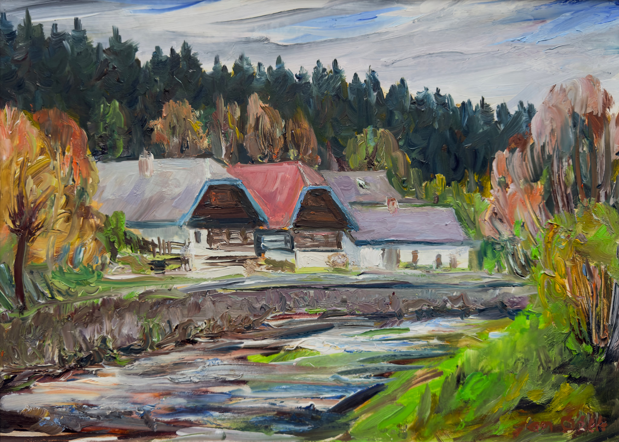 údolí řeky Otavy, šumavské slatě, romantické rybníky i jihočeské vesničky. Tvořil převážně olejomalby